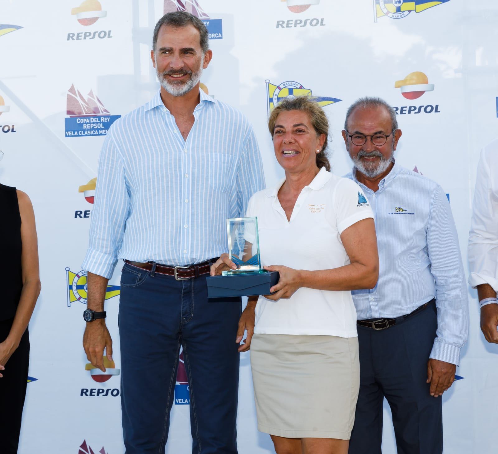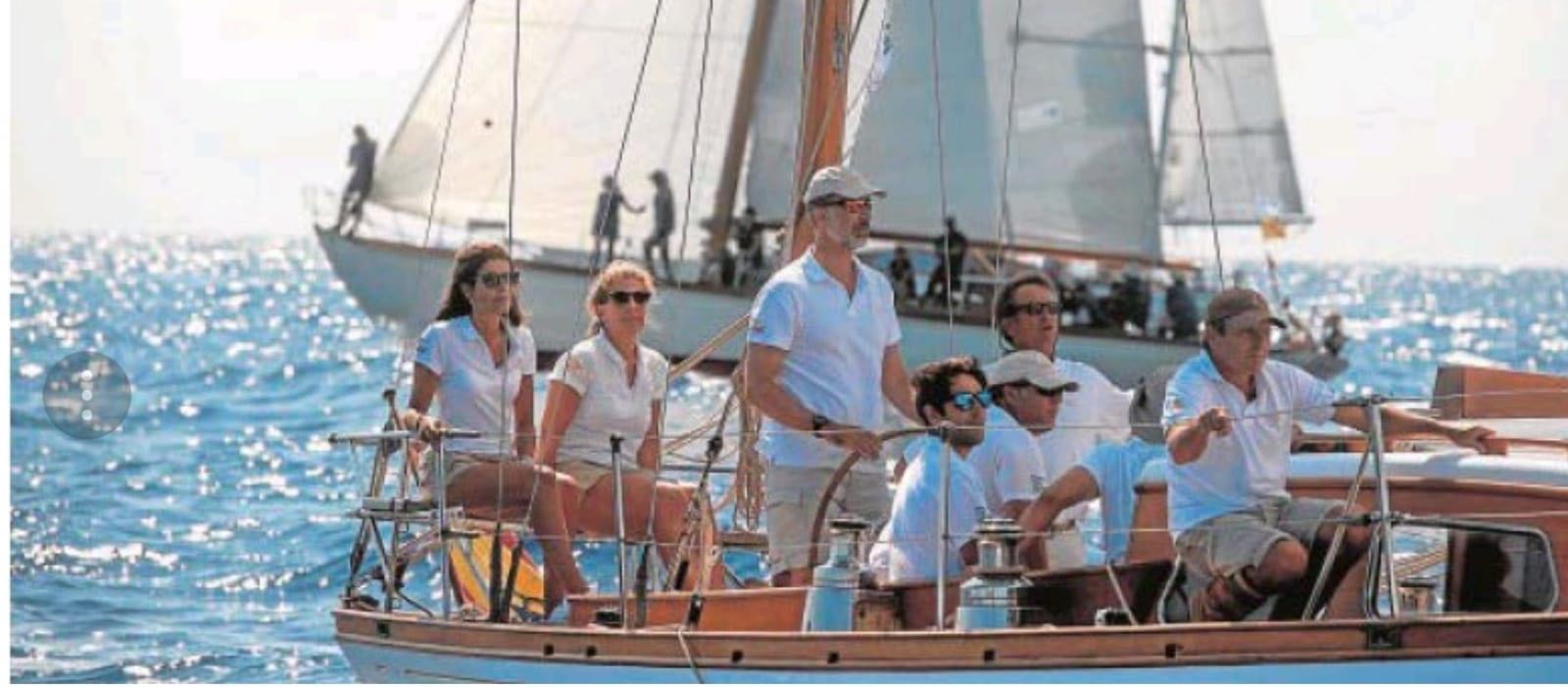 Don Felipe ha compartido regata con la armadora del Giraldilla, Valle de la Riva, presidente de Puerto Sherry, y entre otros con uno de los principales artífices de su perfecto estado de conservación actual y habitual patrón, Petete Rubio.